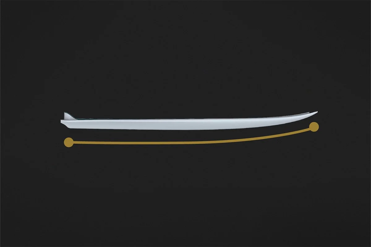 Durch das extrem kompakte Design mit geringem Volumen wird das Swing Weight minimiert, wodurch das Board besonders reaktionsschnell auf Bewegungen reagiert. Gleichzeitig sorgt der Shape für genügend Stabilität beim Start und kontrolliertes Handling bei niedrigen Geschwindigkeiten.